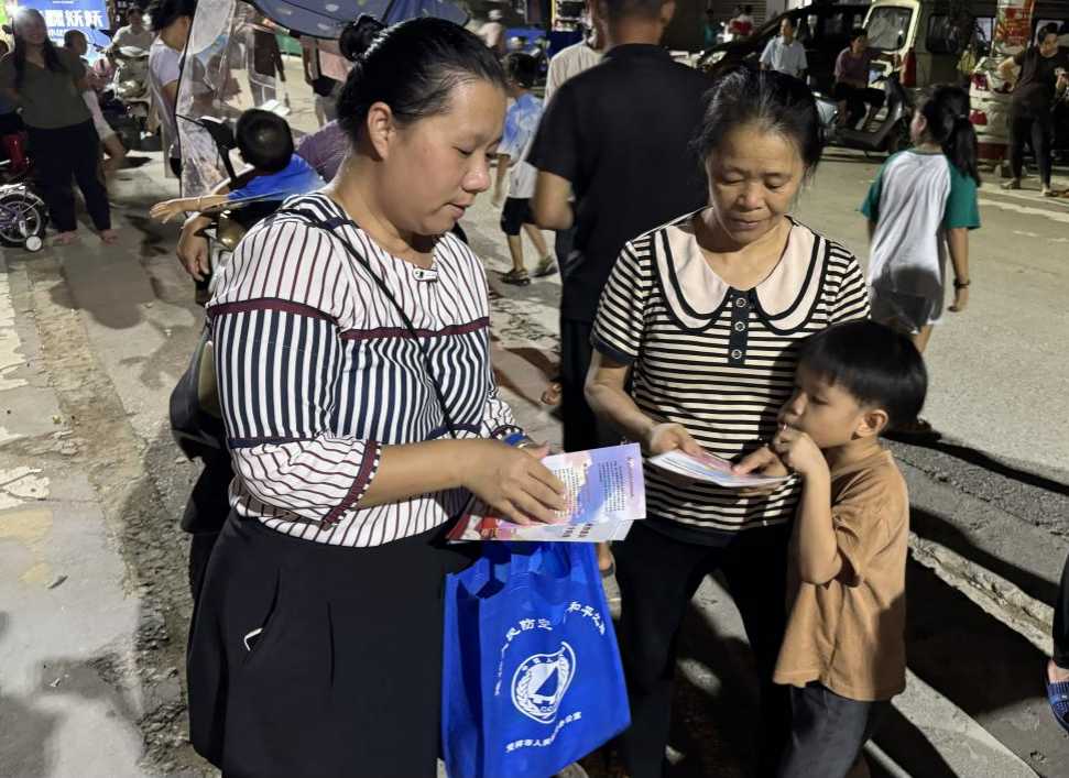 工作人员向群众发放宣传手册