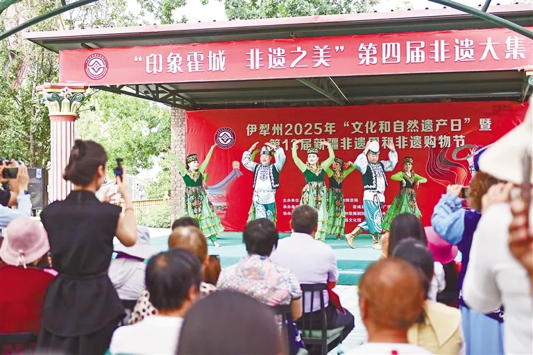 ▲6月14日,在新疆伊犁哈萨克自治州霍城县解忧公主薰衣草园,游客在观看非遗演出。 新华社记者 丁磊摄