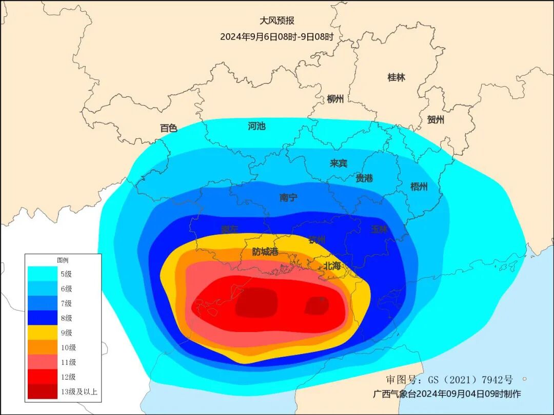 广西气象台预计:受台风“摩羯”影响,6-8日,北部湾海面有暴雨、局地大暴雨到特大暴雨,桂南、桂西有大雨到暴雨、局地大暴雨;6-8日,北部湾海面风力11~12级、阵风13~14级,钦北防沿海城市风力10~11级、阵风12~13级,桂南其他地区风力6~8级、阵风9~11级。广西区气象台于4日7时发布台风黄色预警。广西壮族自治区气象局于11时启动重大气象灾害(台风)Ⅲ级应急响应。
