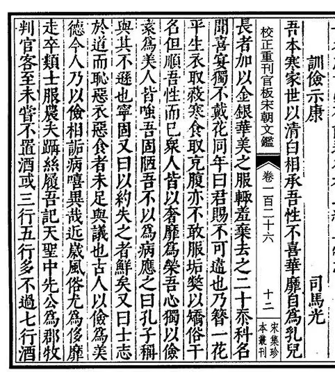 译文:司马光在家训《训俭示康》中说道:我本来出身在卑微之家,世世代代以清廉的家风相互承袭。我生性不喜欢奢华浪费。从幼儿时起,长辈把金银饰品和华丽的服装加在我身上,总是感到羞愧而把它们抛弃掉。二十岁忝中科举,闻喜宴上独有我不戴花。同年中举的人说:“皇帝的恩赐不能违抗。”于是才在头上插一枝花。一辈子对于衣服取其足以御寒就行了,对于食物取其足以充饥就行了,但也不敢故意穿脏破的衣服以显示与众不同而求得好名声,只是顺从我的本性做事罢了。一般的人都以奢侈浪费为荣,我心里唯独以节俭朴素为美,人们都讥笑我固执鄙陋,我不认为这没什么不好。回答他们说:“孔子在说:‘与其骄纵不逊,宁可简陋寒酸,又说:‘因为节约而犯过失的很少’,又说:‘有志于探求真理而以穿得不好吃得不好为羞耻的读书人,是不值得跟他谈论的’,古人把节俭看作美德,当今的人却因节俭而相讥议,哎,真奇怪呀!”