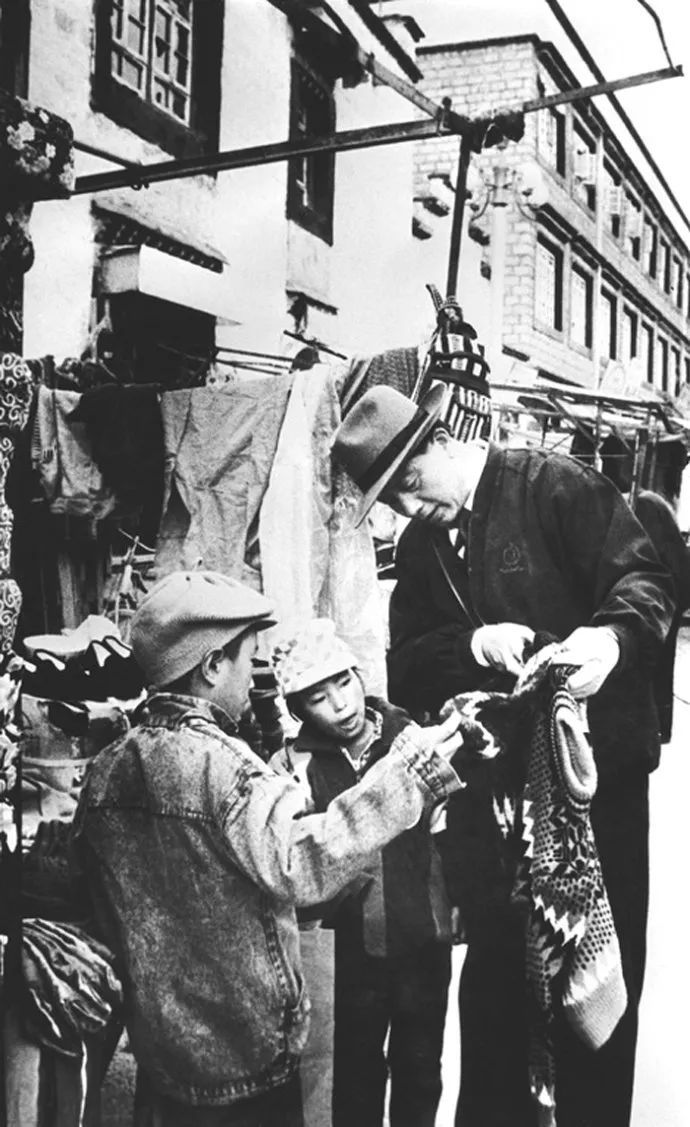 1992年,孔繁森为收养的藏族孤儿购买衣物。资料图,来源于中国青年网。