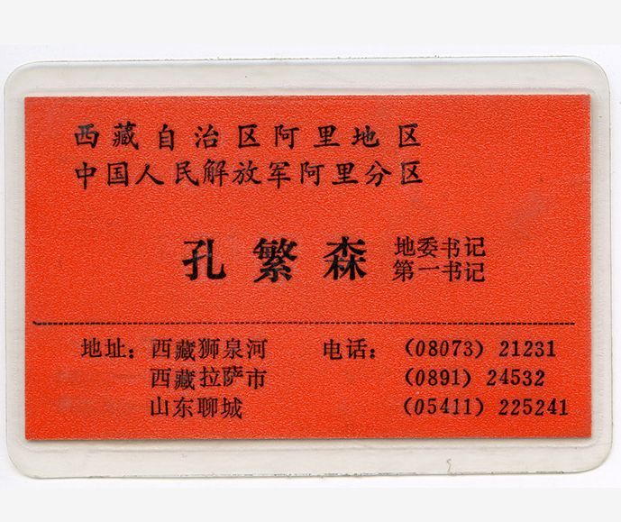 孔繁森的名片。图片来源于孔繁森同志纪念馆网站。