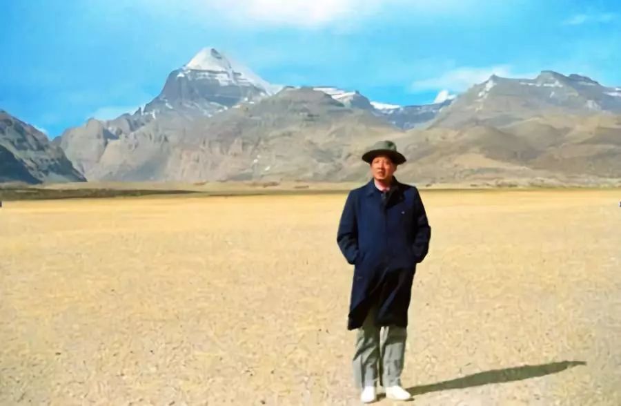 孔繁森深深爱上了神奇而壮美的雪域高原,把整个身心献给了这片土地,这是他第二次赴藏时在冈底斯山前留影。资料图,图片来源于中国青年网。