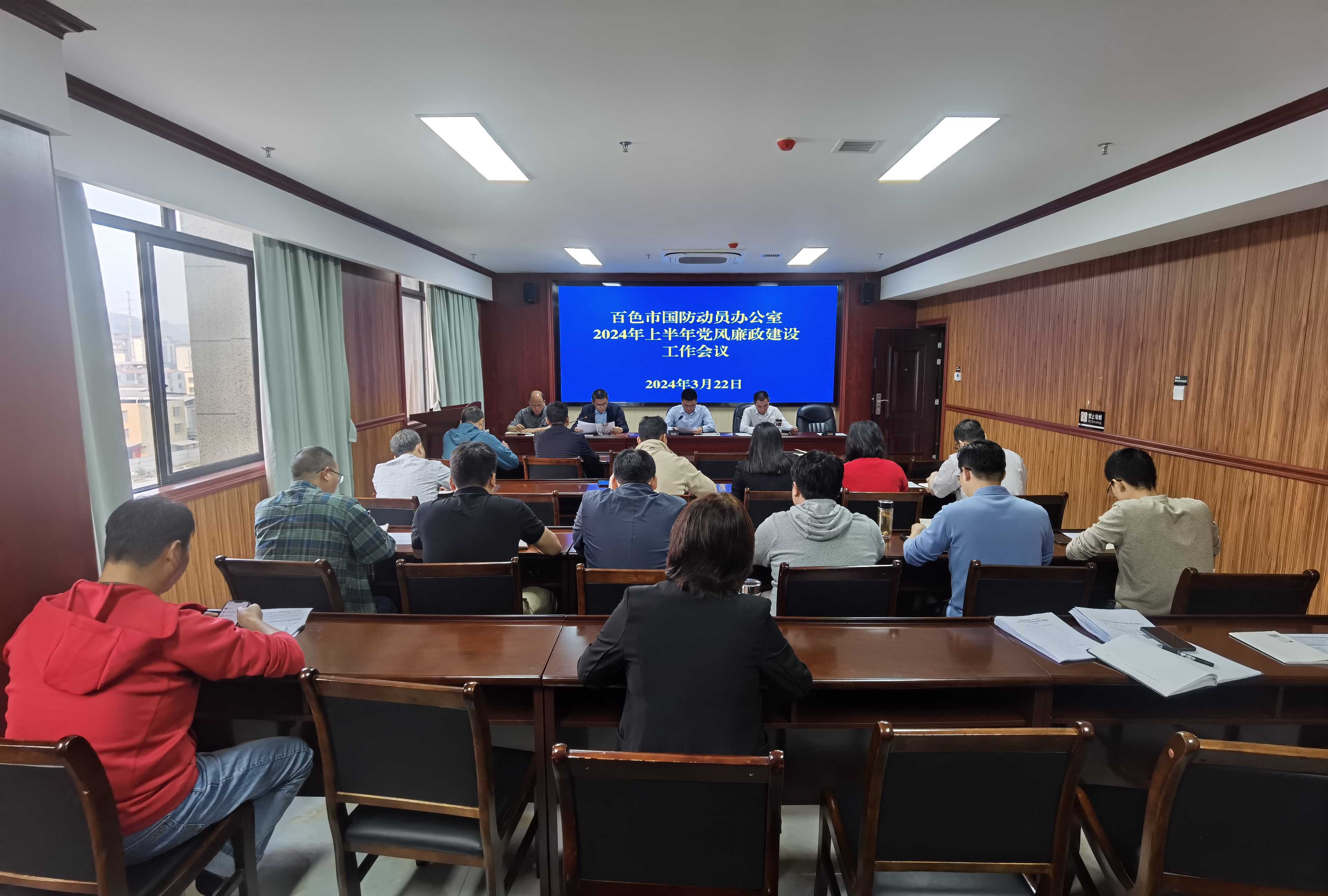3月22日,百色市国动办召开2024年上半年党风廉政建设工作会议,会议传达学习百色市五届人民政府第三次廉政工作会议精神,回顾总结了百色市国防动员系统2023年党风廉政建设情况,谋划部署2024年党风廉政建设工作重点任务。