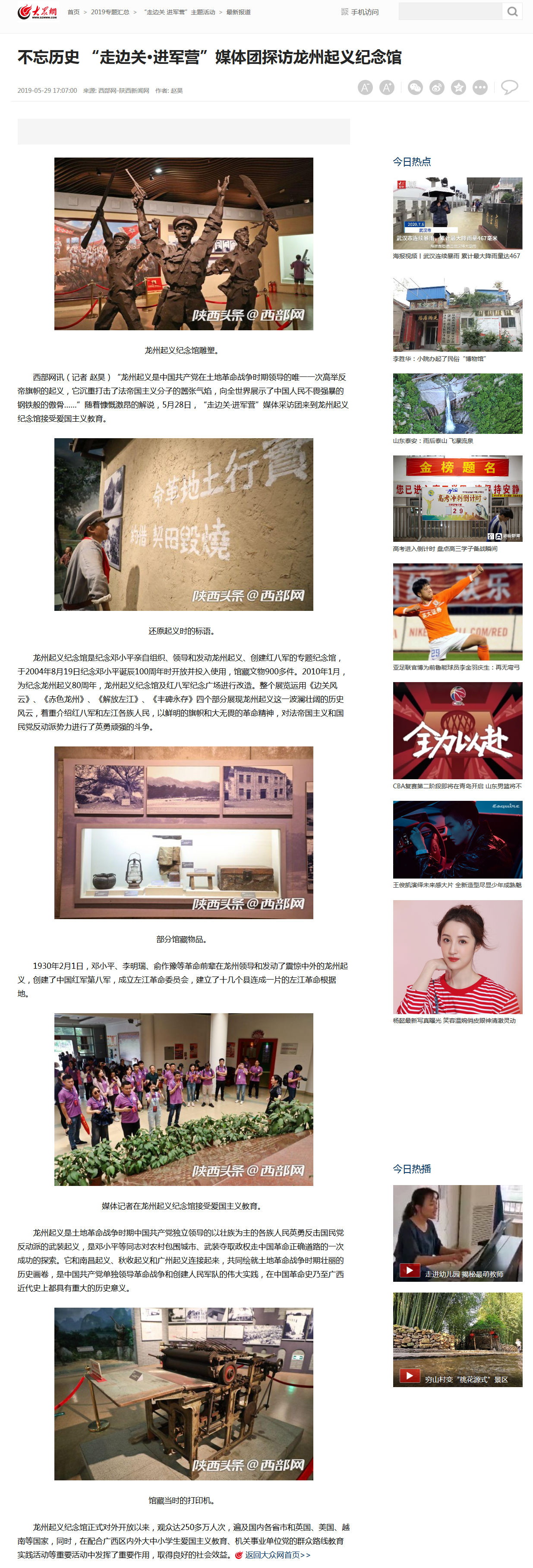 【大众网】不忘历史 “走边关·进军营”媒体团探访龙州起义纪念馆