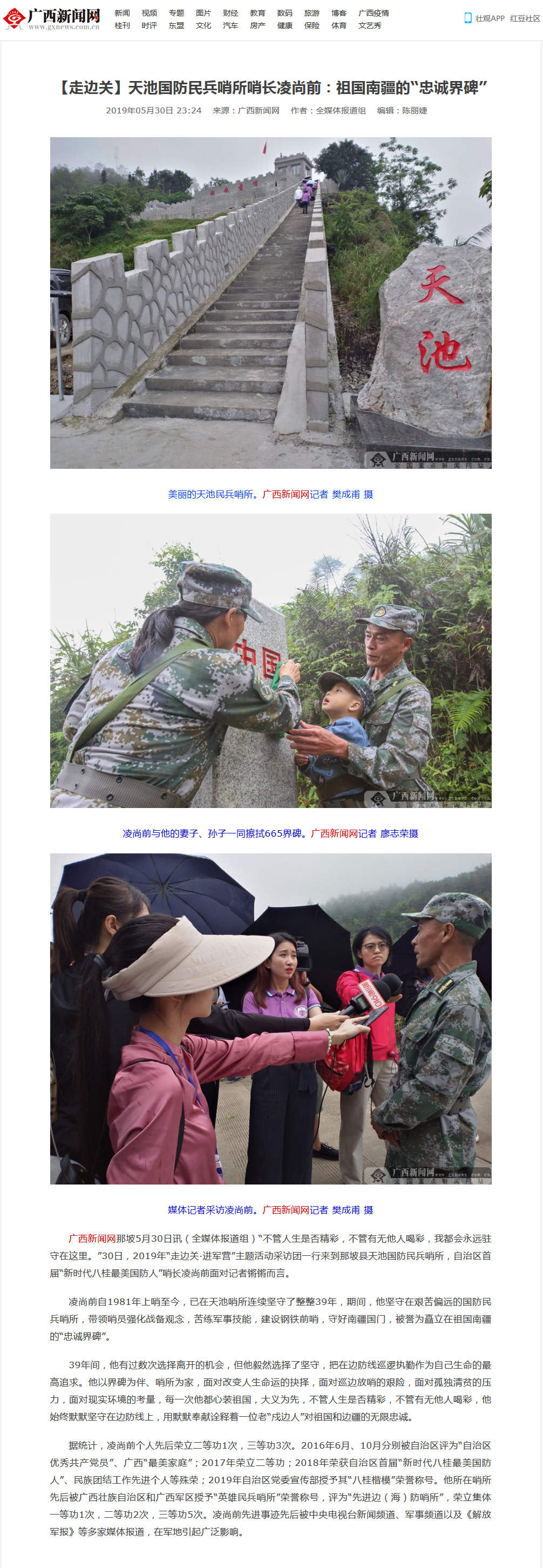 【广西新闻网】天池国防民兵哨所哨长凌尚前:祖国南疆的“忠诚界碑”