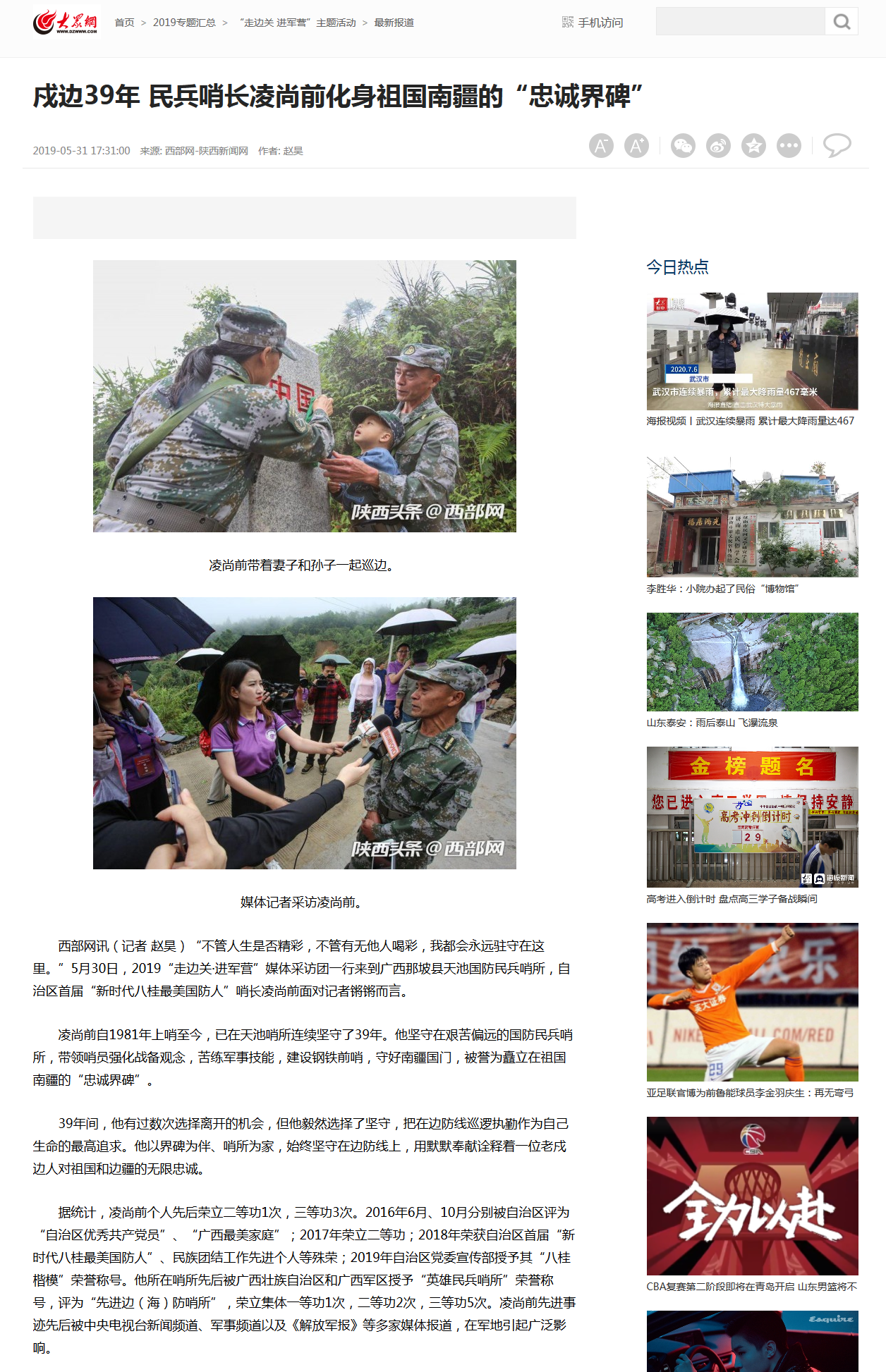 【大众网】戍边39年 民兵哨长凌尚前化身祖国南疆的“忠诚界碑”