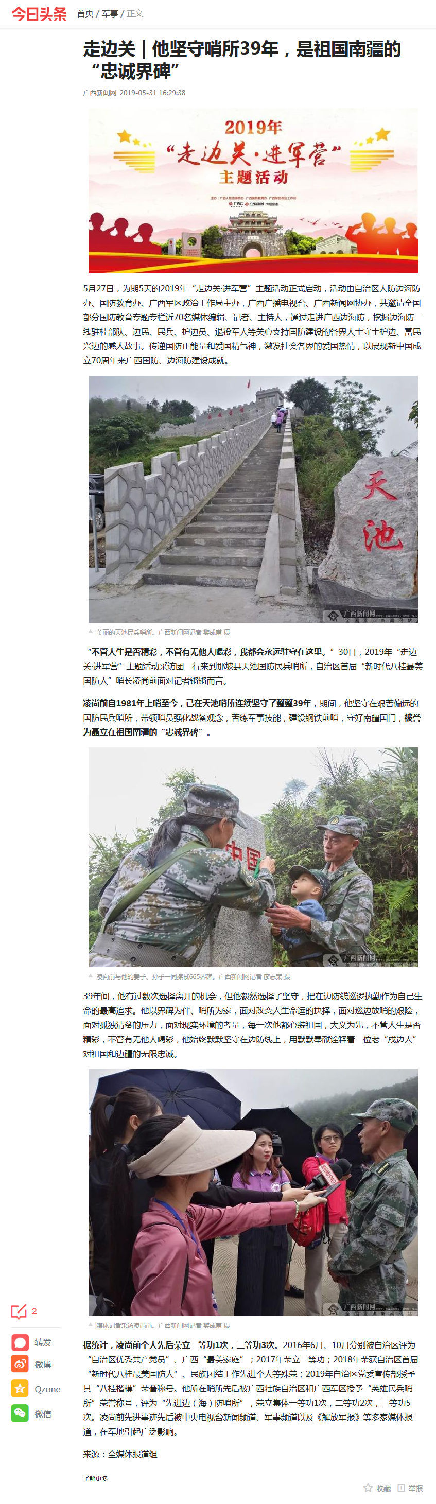 【今日头条】走边关 | 他坚守哨所39年,是祖国南疆的“忠诚界碑”