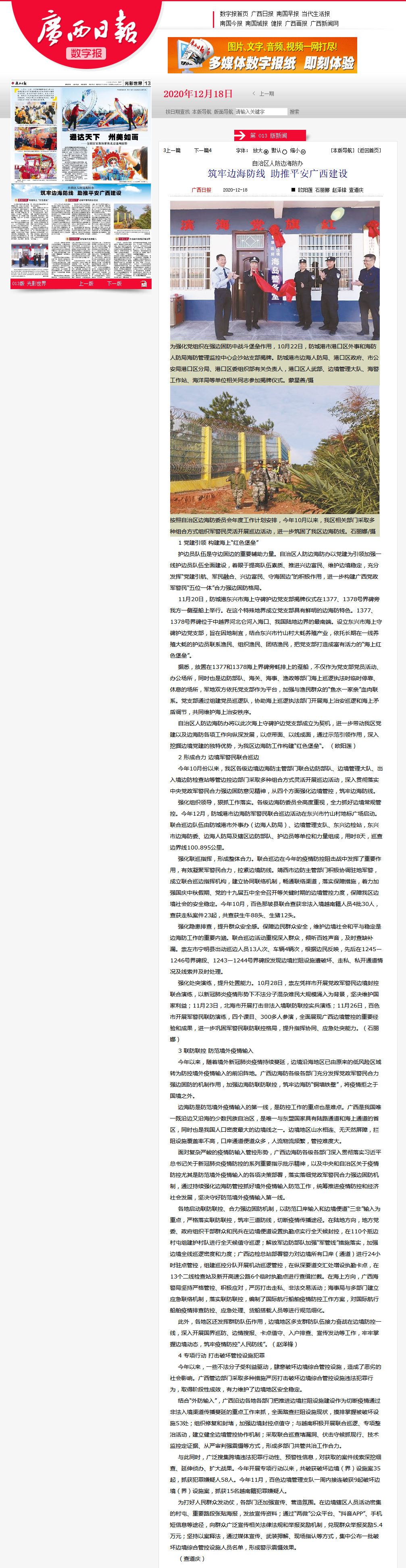 【广西日报】自治区人防边海防办筑牢边海防线 助推平安广西建设