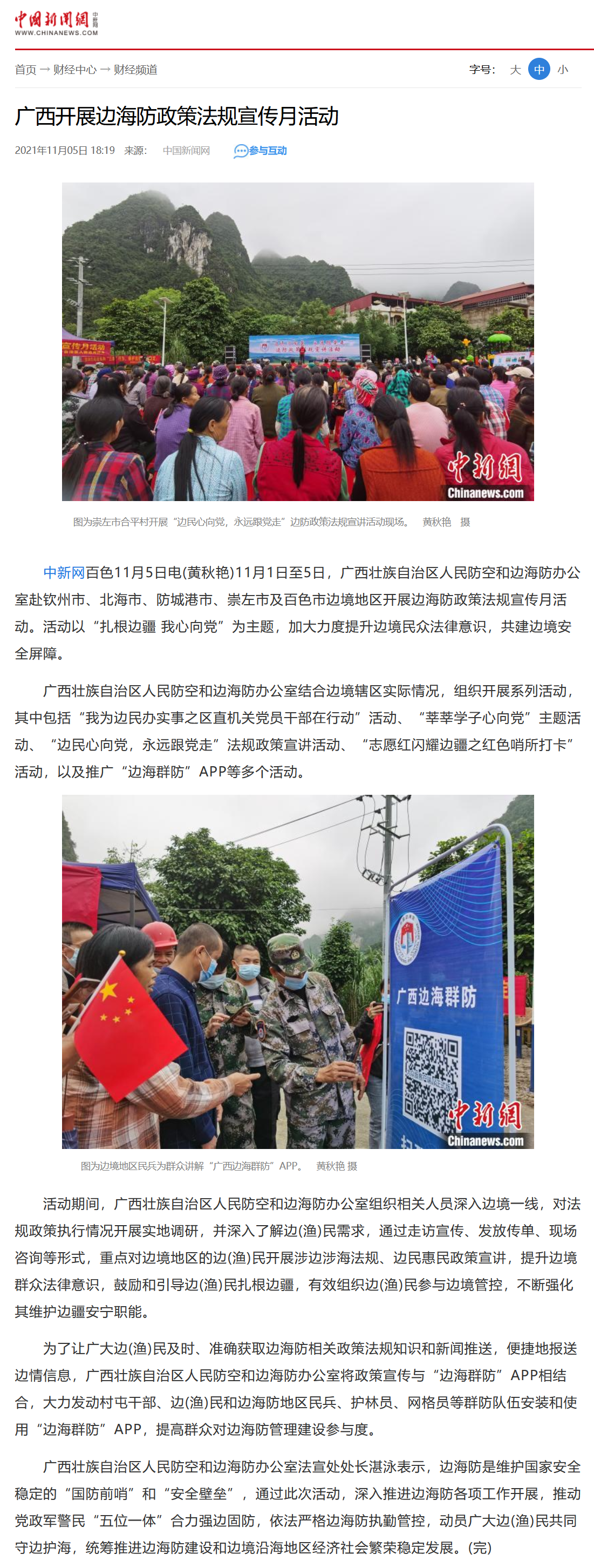 【中国新闻网】广西开展边海防政策法规宣传月活动