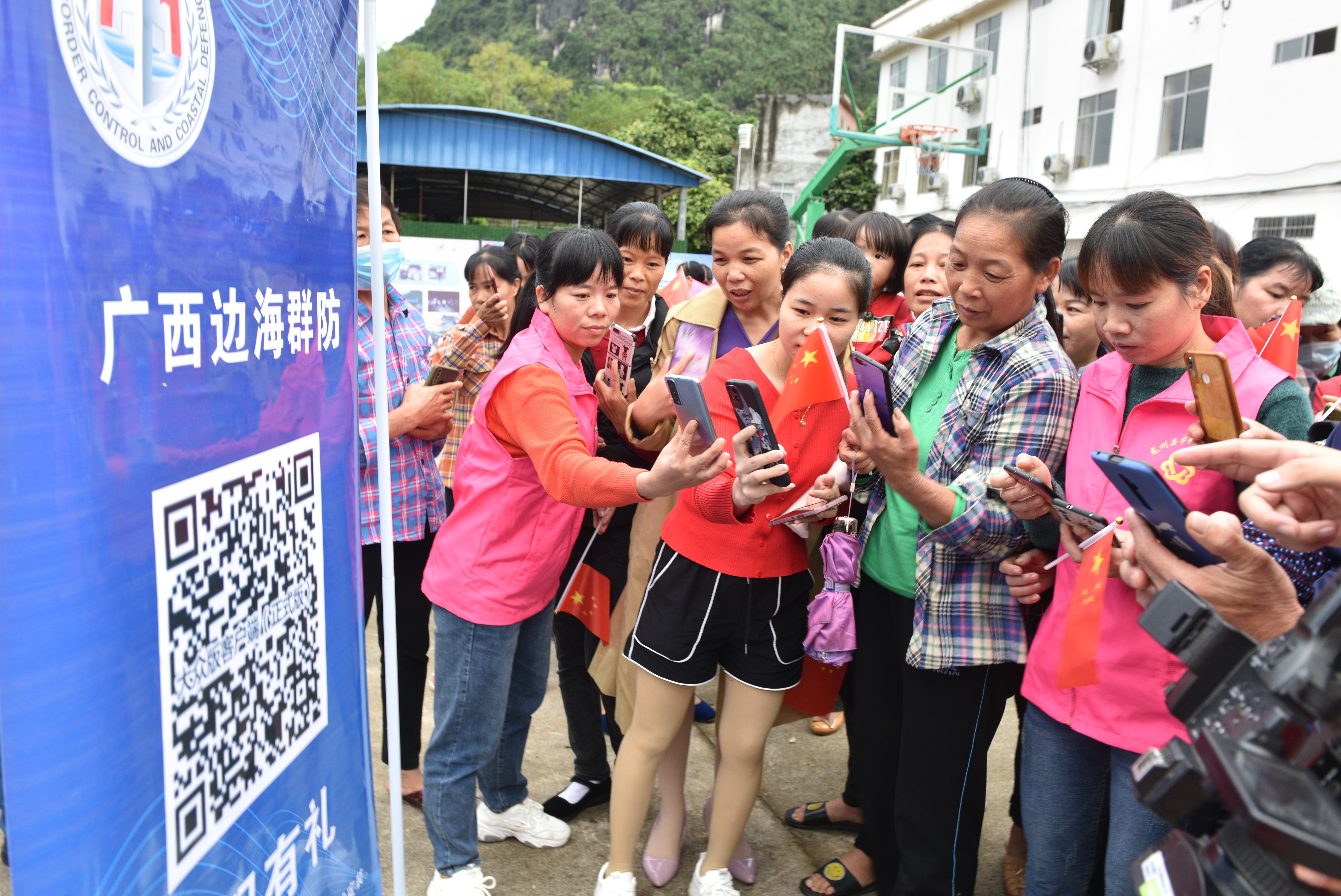 广西龙州县水口镇合平村村民扫码安装“广西边海群防”APP。黄小蝶摄