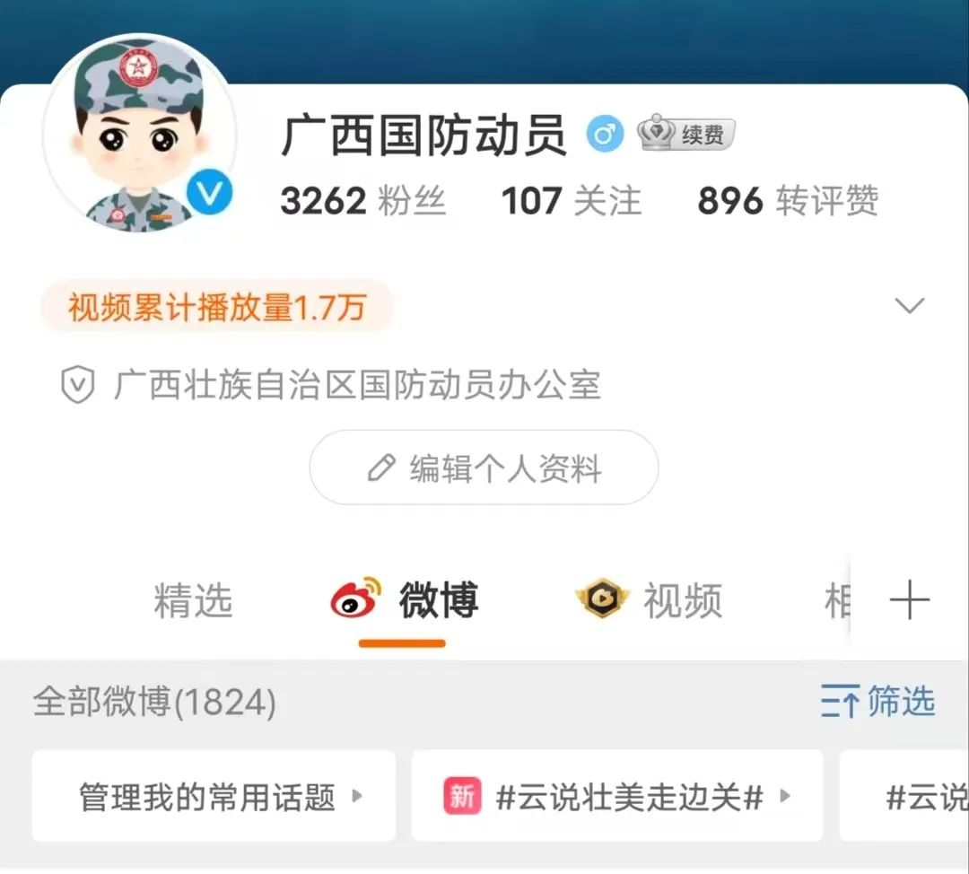 微博搜索关注“广西国防动员”账号