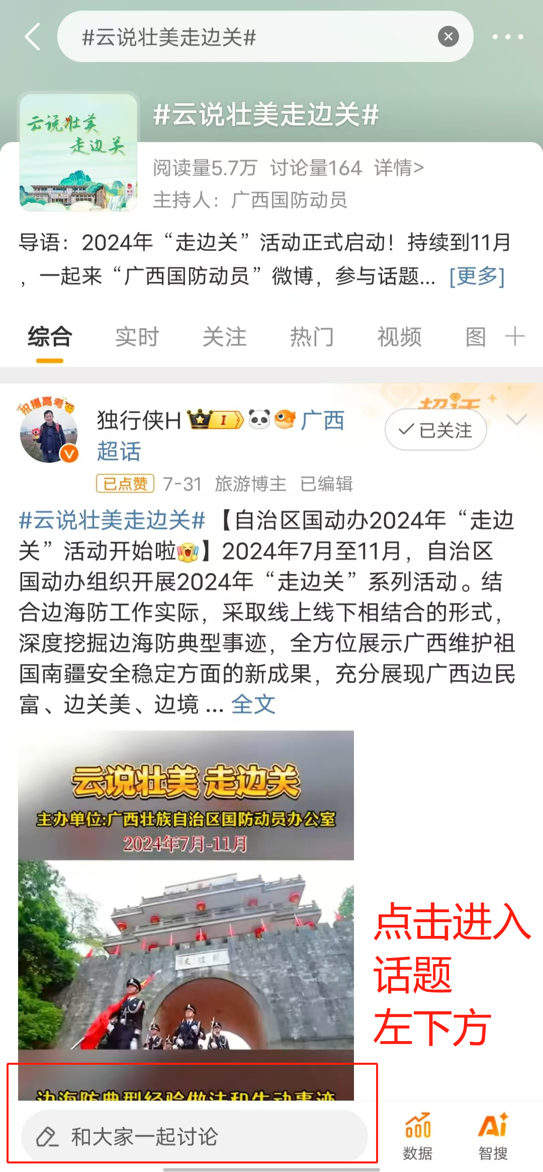 或者搜索“云说壮美走边关”话题
