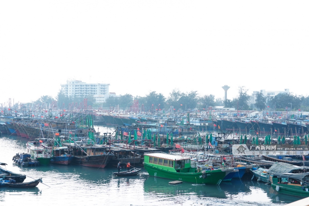一面面国旗在渔船上飘扬。广西新闻网记者 李远兴 摄
